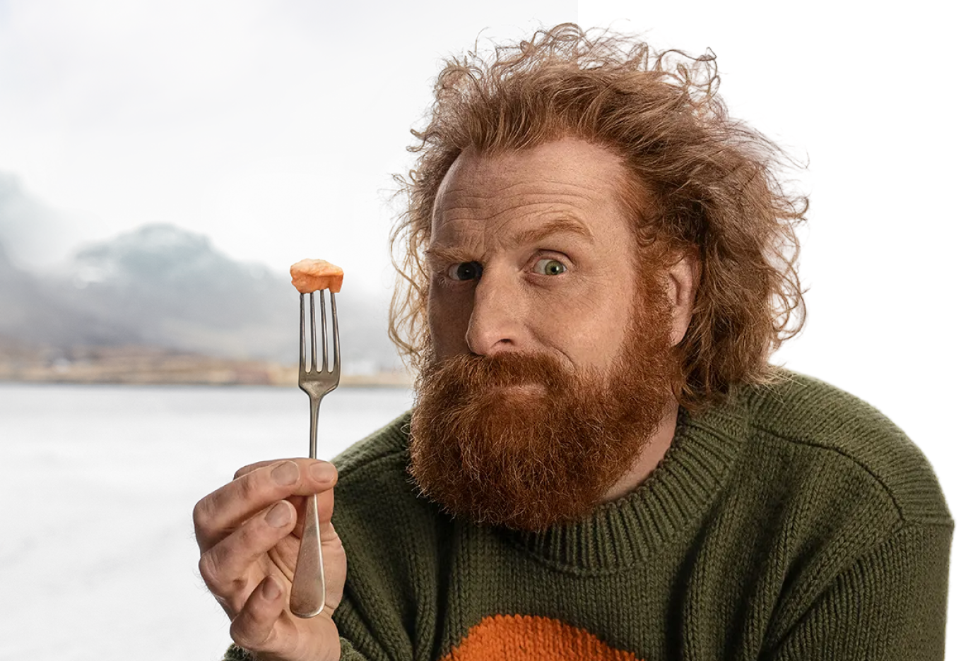 Description du film : Vidéo sans son. Elle montre des paysages norvégiens et la préparation de trois plats à base de saumon MOWI : sashimi, saumon rôti et salade à l’avocat. À la fin, Kristofer Hivju marche sur un quai en tenant une fourchette. Le logo MOWI et le texte « Taste the Origin » apparaissent à l’écran.